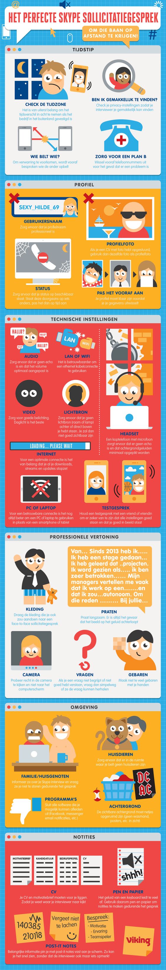 Om goed voor de dag te komen tijdens dit gesprek bereid je je natuurlijk goed voor. Toch kan het zijn dat je er wat makkelijker over denkt ‘omdat het vanaf afstand is’. Niets is minder waar; er is meer afleiding en je eerste indruk kan je ook hier maar een keer maken. Daarom hebben we een mooie infographic gevonden die je stap voor stap door de voorbereiding loodst. Dan kan je gesprek hier in elk geval niet meer op stuklopen!